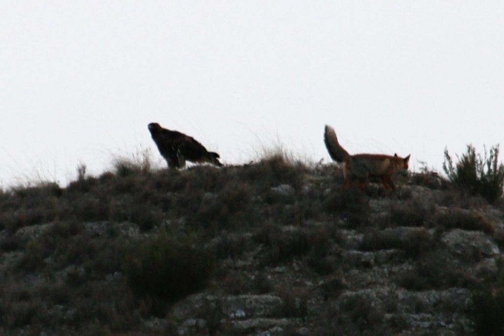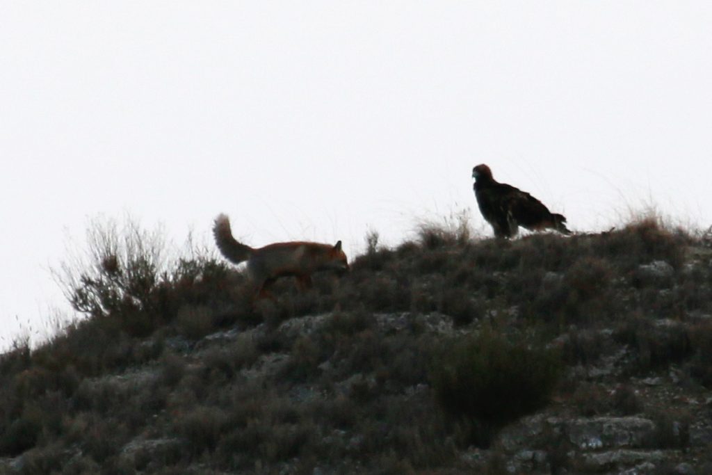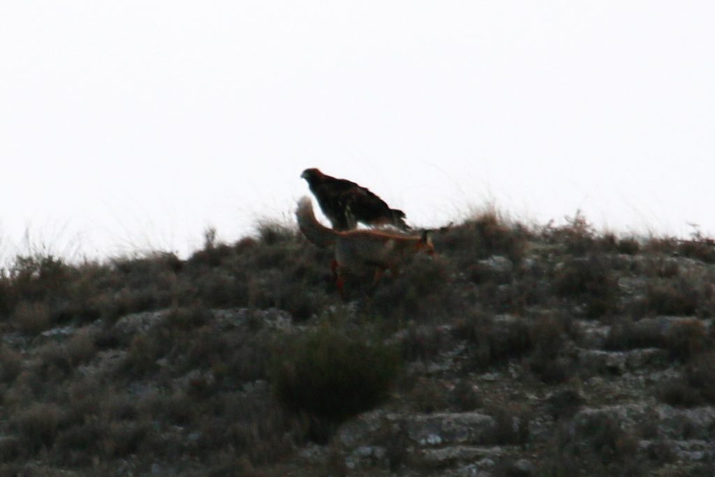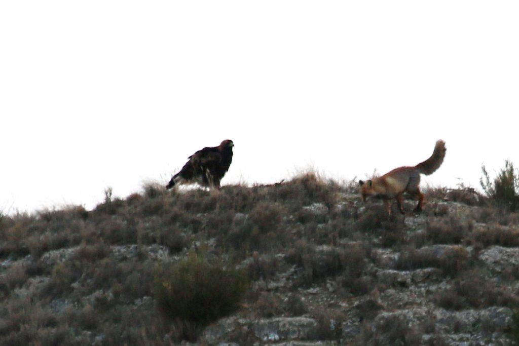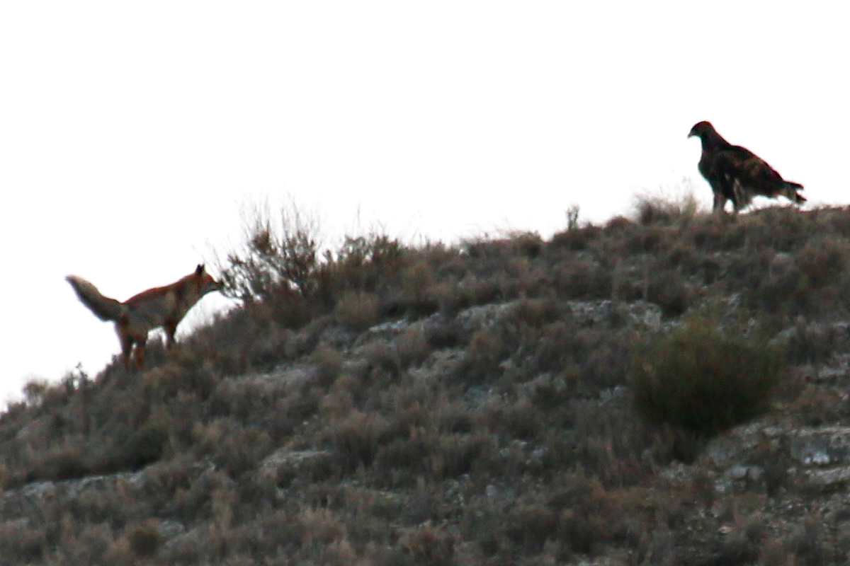 Águila vs zorro 25 de diciembre de 202221 de febrero de 2025 Breve encuentro entre un águila y un zorro rojo en los montes de Botorrita. El zorro intento rodear al águila pero esta no le perdio la cara en ningún momento y al final el zorro tuvo que irse por donde había llegado.