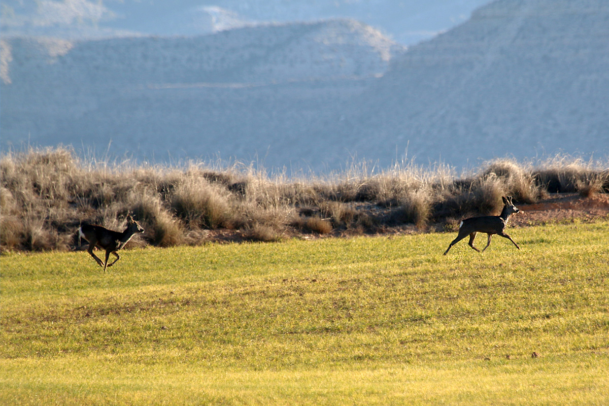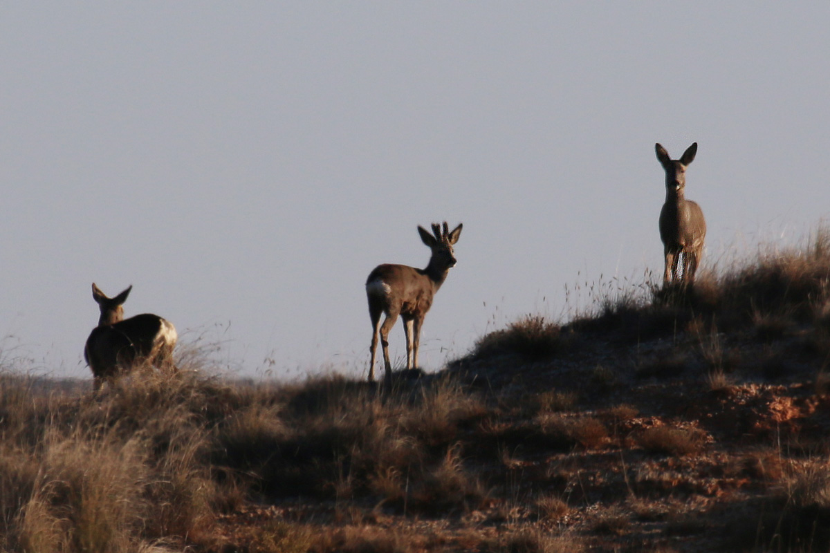 Buitre y corzos 18 de febrero de 202321 de febrero de 2025 Joven ejemplar de buitre leonado (Gyps fulvus) posado en un cerro junto al barranco rojo de Botorrita y un grupo de corzos (Capreolus capreolus) pocos minutos después en la misma zona.